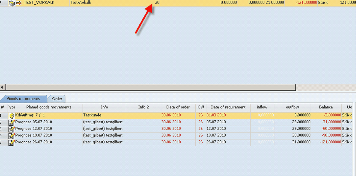 Sum of all planned issues in Inventory UoM (according to current filter settings) plus sum of all planned inflow in Inventory UoM (according to current filter settings), excluding order-related quantities (e.g. bill of materials with order related item).