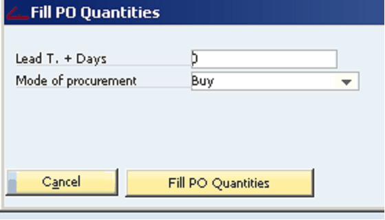 Note: When the quantity in each line is entered manually (manual mode), the system only fills this field with values "Buy" or "Make". You must select "Transfer" manually.