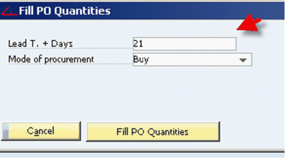 The requirement date (list of peggings) is less or equal to the current date + lead time + buffer days given in working days. The sum of the affected peggings, taking into account the already planned receipts in this period, is the quantity to be ordered or to be produced. The calculated delivery date is, at earliest, the current day (today) + replenishment lead time + buffer days (work days). The determined date is at least one day after current date + replenishment lead time. If the determined day is not a working day, the next working day is identified and proposed. The determined values are entered in the order recommendation item list (upper part) in columns "quantity" and "requirement date".