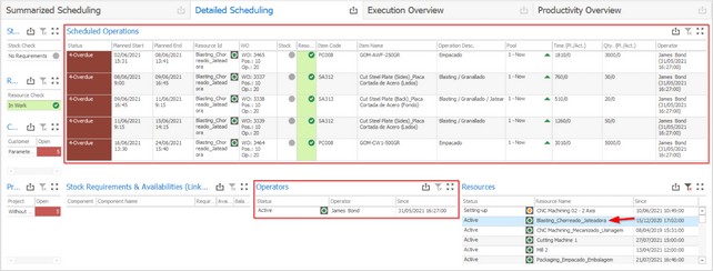 Important: On the Scheduled Operations grid, the routing positions will display the resource that is currently linked to them, not the alternative or parallel resources, while the “Resources” grid, for the “Active” status, shows all currently active resources, even if they are alternative or parallel resources. In situations like these, when you click on a resource from the “Resources” grid that is different from the default resource set to the routing positions, the currently active routing position(s) will not be displayed under the “Scheduled Operations” grid (as the dashboard filters for the exact resource identification). If this happens, you can check the currently active operations for the resource using the Beas function Production Time Administration, inside the Active work order times tab. |